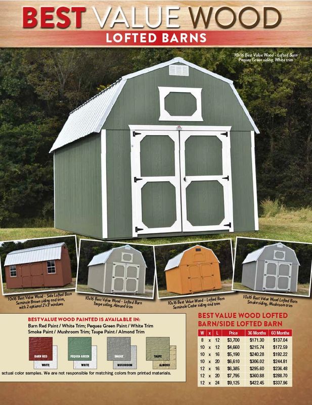 . They are perfect for storage and can easily be moved if you move. Derksen Portable Buildings 950 S Commonwealth Drive Mayfield KY 42066 Phone 270-247-1097 Fax 270-804-7550. W x L Price 36 MO 60 MO W x L Price 36 MO 60 MO.